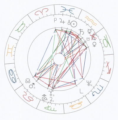 Mir ist die genaue Geburtszeit nicht bekannt. Wir bekommen also nur ein halbes Horoskop ohne Häuser und mit nur einer ungenauen Mondstellung.